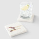 The coasters are gorgeous, a quality feel and heavy weight. They look like a precious archeological find. A rustic stone juxtaposed with a modern floral black and white print. I like the way the print goes slightly imperfect on the cut stone edges giving them a kind-of natural beauty.