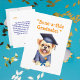 Celebrate the top dog of the class with this adorable and hilarious graduation card! Featuring a cheerful pup proudly wearing a graduation cap and a diploma in its paw, this card is perfect for any dog-loving graduate. The front includes a punny message "Bone-a-fide Graduate" in playful, bold lettering.