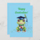 The card has a bright, whimsical design with bubbly fonts, vibrant greens. Perfect for grads who love humour, frogs, or just need a reminder to keep hopping forward!