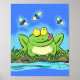 This cute poster features a hungry green frog looking at 3 fat flies by the river. All done in happy cartoon style!