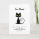 Humourous change of address announcement card shows a cool black cat with green eyes and a curling tail. Above the feline is "I've Moved" and "My owner Mandy and I live at" with the address. The inside of the folded card reads "I'll purr if you visit." Customise and personalise the text.