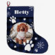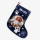 Funny cute navy blue plaid dog pet photo Christmas Large Christmas Stocking