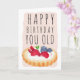 Happy Birthday! A cute , funny and naught birthday card with "Happy Birthday you old tart" written with a cute hand drawn strawberry and blueberry tart and cream. The pink frame color is fully editable. With a modern typography.
