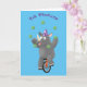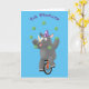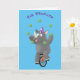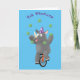 Funny cute rhino juggling on unicycle card