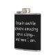 The flask itself is fine. It’s a cheap flask, obviously bought in bulk, however am prepared to overlook that. Given that it is a personalized item, I would have liked to have seen gift boxing instead of the generic packaging. Terrible printing, and/or quality. It’s a cheap, tacky vinyl. It is not cut straight and is also applied in a way that it is overhanging the bottom, causing the glue to catch on items and it will eventually roll and tear, damaging the wrap.
