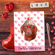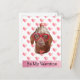 Funny Dachshund Be My Valentine Dog Valentine's Day Holiday Postcard | Look at our cute hilarious Valentine's day dog holiday card! This adorable card features a cute dog with a party hat, funny big red glasses, white paws, and pink hearts. On the front has the saying "Be my Valentine". Whether you're sending it as a gift to a friend or family member who loves their dogs, this card makes a cute gift for all dog lovers!