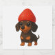 Funny dachshund with strawberries and hat fruity