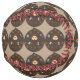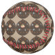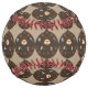 This awesome softball features a cartoon of a Dad who is a coffee monster. His face is inside a big droplet of coffee and he has a creepy tongue and is starting to go bald. Sugar, milk, coffee and a spoon surround him, everything he needs for his favourite drink. The light brown text says, “Dad loves coffee”.