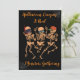 Funny and spooky adult Halloween party invitation by adding bit of the modern typography and black and orange colour patterns with funny dancing skeletons
