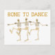 This funny dance cartoon design postcard has three skeletons dancing, kicking up their heels, in a line, like a can can girls or chorus line dance, or something. Above their heads (skulls?), it says, "Bone to Dance" in a font that looks like crossed bones.