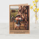 Celebrate a little one’s big milestone with this funny baby’s first steps card, perfect for any farmer’s wife or countryside family. This dark‑humour greeting card features a Pixar‑style 3D baby wearing farm boots, a flat cap, and a tiny waistcoat, drinking milk from a bottle while proudly holding a pitchfork beside Victorian farm machinery.