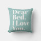 Funny Dear Bed, I Love You Aqua Teal Cushion
