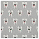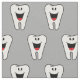 Funny Dentist Cute happy Tooth Pattern Fabric on a grey background. Easily Choose the type of fabric, size, and quantity required from the options menu.
