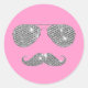 Funny Diamond Moustache With Glasses Classic Round Sticker