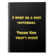 Yellow text humorously comments on a short-lived diet, set against a plain black background. The bold font emphasizes a sense of relief and amusement.