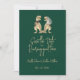 This fun Jurassic dinosaur wedding “Save the Date” invitation is perfect for couples looking to add a fun, dinosaur-themed twist to their wedding save the date Invitation announcement. Featuring charming watercolor illustrations of a funny dino T-Rex bride and groom in brown beige hues on a stylish dark green background, this Jurassic era design captures the playful spirit of your big day. The modern typography script adds a touch of elegance while maintaining a lighthearted feel. Easy to customise with your names, wedding date, this unique invitation is sure to delight your guests. Original artwork by the talented Catherine Sweetman. Perfect for a roaring good time!