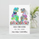 Delight your wedding guests with this funny colourful dinosaur themed wedding save the date invitation with T-Rex bride and groom standing in a colourful wildflower meadow. Easy to customise with the bride and grooms names and the wedding date. Fun T-Rex bride and groom illustrations with modern whimsical typography script. Unique original artwork by artist Catherine Sweetman