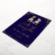 Featuring a playful T-Rex bride and groom surrounded by lush Jurassic-inspired foliage with shimmering gold foil accents, this invitation adds personality, charm, and a touch of fun to your wedding stationery. The rich navy blue background paired with modern gold foil script typography creates a stylish contrast that feels both elegant and lighthearted.
