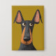 Brighten your day with this adorable button! Featuring a playful cartoon-style Doberman, this button is a fun and unique accessory. The bold black and tan design stands out against the warm mustard yellow background. This high-quality, durable keychain will add a smile to your face every time you lookm at it.