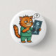 This funny button features an orange cat dressed as a doctor, holding and examining an X-ray image with a confused expression in a playful cartoon style.