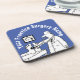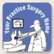 Gift for a doctor or a doctor's surgery. Funny image shows a doctor with his stethoscope testing a patient's feet. Fun coaster shows doctor checking patient's feet with a stethoscope. Personalise with name of your practice or surgery. Colours of this item are blue black and white.