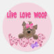 For Pet Lovers, this funny live love woof design makes a great gift for anyone who loves dogs. Design is of a dog with a pink bow sitting on the word woof. Available on t shirts, caps, sweatshirts, hoodies, tank tops, buttons, magnets and more.
