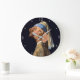 Funny Dog Girl with a Pearl Earring Vermeer Parody Large Clock