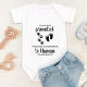 You've been promoted from Dog grandparents to Human grandparents! Include your best dog and newly appointed guard dog in your pregnancy announcement to your parents, the new baby grandparents with this adorable dog pregnancy announcement baby clothes. “You've been promoted from Dog grandparents to Human grandparents...Personalize with Baby Last Name and Your Month/Date 20xx. This grandparents pregnancy reveal will be a favorite! COPYRIGHT © 2020 Judy Burrows, Black Dog Art - All Rights Reserved. Funny Dog Grandparents Pregnancy Announcement Baby Bodysuit