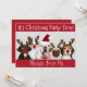 For Dog Lovers and those who love to laugh! A cute and funny: It's Christmas Party Time Invitation, with five dogs wearing festive red noses and a Santa Hat. Designed in bright red (front and back), this invitation reads: Please Join Us (front), with the date, time, contact name and address, and RSVP details on the reverse. To personalise, simply use the template to replace the sample text with your details.