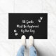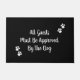 Greet guests to your home with a funny welcome mat that has whimsical script text "All guests must be approved by the dog" and white paw prints on opposite corners. The black background colour can be edited to any other colour by choosing customise and selecting a different background colour from the colour picker. You can also edit the text if you desire, or leave it as written. This doormat makes a nice gift for dog owners.
