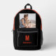 Funny Dog Pet Photo Orange Monogram Personalised Printed Backpack