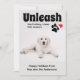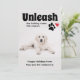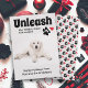 Funny / humourous dog photo Christmas holiday greeting card. Add a photo of your pet to this "Happy Holidays" greeting card. Decorated with a dog paw print and a red Santa hat. Text says, "Unleash the holiday cheer this season." Finish off by adding your name and the name of your dog to the bottom.