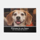 Personalise this funny dog (or other pet) photo doormat with a custom photo of your own dog, cat, or other pet, and the words "Welcome to our home (Did you bring the snacks?)" This is a great gift for the grumpy cat or dog owner and is sure to get a laugh from your guests. Perfect for you home or outside your dorm room! Easy to customise with your own pet photo.