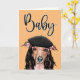 A fun and eye-catching design of an Italian Greyhound dog wearing a long brown hair wig; trendy pink spectacles and a French black beret. The words, baby, appear above her in a decorative calligraphy style font and the inside reads, let's get this party started. Customise the message and the colour of the background to suit your requirements.