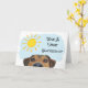 Looks like the dog is waiting for someone to get out of bed. He's anxious for them to start their special day. And why not. The sky is blue and the sun is shining. Looks like a great day for a friends or family birthday. Happy Birthday!
