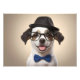 Funny dog with glasses and hat photo print