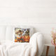 Colourful artistic pillow featuring a funny dog dressed up for Halloween, surrounded by pumpkins. In the background a haunted castle with wicked witch and bats. So where are those treats they promised?