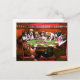 Famous art of Cassius Marcellus Coolidge - “Poker Sympathy” postcard. In this scene, it looks like eight dogs are playing poker, cocktail is spilled all over the table and everybody is having fun. Two bulldogs with “I am the boss” attitude make this painting very tragicomic. Another bulldog seems to have a straight flush and by that, he/she can beat another bulldog. Send this funny poker playing dog -postcard to your dog loving friend. He/she will get a smile on his/her face seeing this hilarious picture of dogs playing big pots at a poker table while drinking alcohol and smoking cigars.
