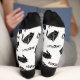 Step out in playful style with these Funny Doodle Black and White Cat Socks! These unique and charming socks feature an all-over pattern of various chunky, abstract, and humorous black cats rendered in a delightful doodle or folk-art style, accented with bold "MEOW" lettering.