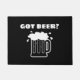 Funny doormat for beer enthusiasts - Got beer? Black and white design with foaming pint of beer mug logo. Make your own custom indoor / outdoor door mat with custom background colour and text. Add your own welcome message, family name, surname, initial letters or funny quote. Cute gift idea for new home / housewarming, Irish pub, bar, club, cafe, wedding venue, liquor store, shop, company office, alcohol business etc. Fun typography. Personalizable template. Create your own humourous entry mat / rug for front door / entryway or hall. Customisable home decor / decorations for your house, bachelor pad, room, manly mancave etc. Cool gift idea for single guys or new homeowners