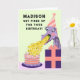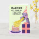Cute birthday card featuring funny dragon girl design. Edit text to customise.