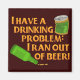 This funny beer design says, "I have a drinking problem: I ran out of beer!" in bold orange-yellow letters. It also features an empty beer bottle / beer can in shades of green. This is a humourous design for any beer drinker, brewer or party goer. It would also be fun to display for Saint Patrick's Day or Oktoberfest.