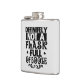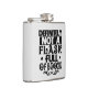 The flask itself is fine. It’s a cheap flask, obviously bought in bulk, however am prepared to overlook that. Given that it is a personalized item, I would have liked to have seen gift boxing instead of the generic packaging. Terrible printing, and/or quality. It’s a cheap, tacky vinyl. It is not cut straight and is also applied in a way that it is overhanging the bottom, causing the glue to catch on items and it will eventually roll and tear, damaging the wrap.