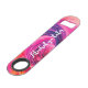 Funny quote says, "Alcohol ya later" Update to say queen of all queens... or whatever other funny thing you want your bottle opener to say. Pink and red cosmic energy compliments the text templates. The backside offers a bold, black monogram initial and more handwritten script text for a name or nickname. Great gift for that one friend that loves Valentine's Day colour combinations... or yourself.