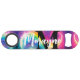 Funny quote says, "Keep calm. Drink on." Update to say queen of all queens... or whatever other funny thing you want the message to be on the bottle opener. Rainbow cosmic energy compliments the bold script text.  The backside offers a bold, black monogram initial and more handwritten script text for a name or nickname. Great gift for that one friend... or yourself.