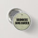 "drummers bang harder" pin-back button for drummers is available in several round sizes.