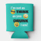 This funny cooler with drunk emojis will be the life of the party. Teal aqua background with " I'm not as think as you drunk I am!", and personalised on the bottom with a name, date, or initials. Bring some fun to your next party or get together.
