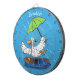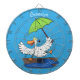Funny duck with umbrella dancing cartoon dartboard