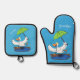 Funny duck with umbrella dancing cartoon oven mitt & pot holder set
