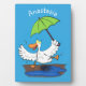 Funny duck with umbrella dancing cartoon plaque